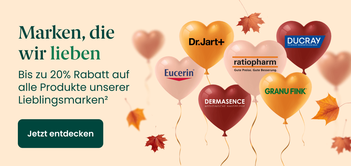 | Bis zu 10 € Rezept-Bonus pro Medikament¹ Lösen Sie Ihr E-Rezept bei DocMorris ein und sichern Sie sich für jedes verschreibungspflichtige Medikament einen Rezept-Bonus von bis zu 10 €¹. Ihr Guthaben wird 14 Tage nach dem Kauf gutgeschrieben und automatisch zum Quartalsende ausgezahlt. | ¹ mind. 1,00 € pro Medikament auf Rezept. Teilnahmebedingungen unter https://www.docmorris.de/lp/bonus-teilnahmebedingungen ² Mit dem Rabattcode erhalten Sie vom 17.10.2025 bis 30.10.2025 ab einem Mindestbestellwert von 59 €, 10% Rabatt (Code: Love10), ab 99 €, 15% Rabatt (Code: Love15) und ab 199 €, 20% Rabatt (Code: Love20) auf alle Produkte ausgewählter Marken. Die Rabattierung gilt bis zu einem maximalen Gesamtbestellwert von 300 €. Der Wert des im Bestellprozess eingegebenen Gutschein(code)s wird automatisch vom Rechnungsbetrag abgezogen. Nicht kombinierbar mit weiteren Aktionen oder Preisvorteilen, z.B. Sonderpreisen, die exklusiv über Dritte ausgelobt werden. Nicht einlösbar beim Kauf von Produkten, die über den DocMorris Online-Marktplatz bei anderen Anbietern erworben werden. Bei Eingabe eines Gutschein(code)s kann ein höherer Preis als der Sonderpreis zu Grunde gelegt werden. Ein den Rechnungsbetrag übersteigender Gutscheinwert verfällt. Die Auszahlung des Gutscheinwerts ist ausgeschlossen. Für die Einlösung des Gutscheins müssen Sie sich in Ihr Kundenkonto einloggen. | |