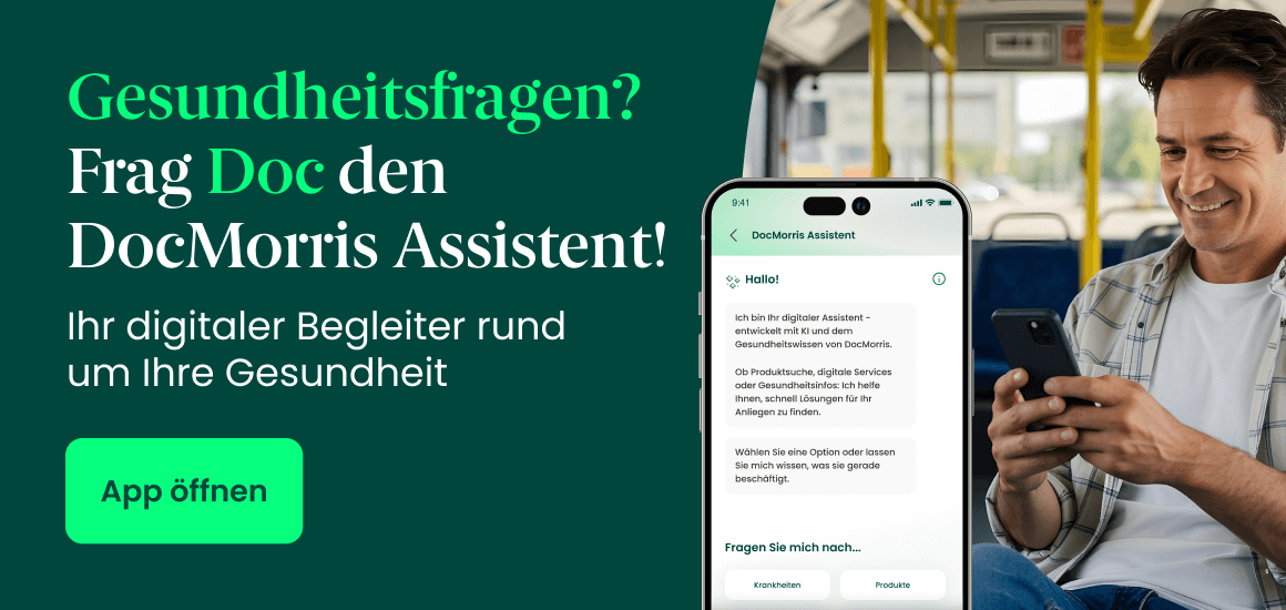 | Neu in der DocMorris App: | Der DocMorris Assistent ist Ihr digitaler Gesundheitsbegleiter. Sie können ihn alles fragen. Er antwortet ohne Fachbegriffe, ohne Umwege – einfach und verständlich. Der Assistent nutzt moderne AI-Technologie und wurde von uns entwickelt, um Ihre Fragen rund um Gesundheit verlässlich, verständlich und hilfreich zu beantworten. Er hört zu, denkt mit und führt Sie zur passenden Antwort. Oder zur passenden Lösung. | - Verlässlich: Inhalte aus geprüften Quellen